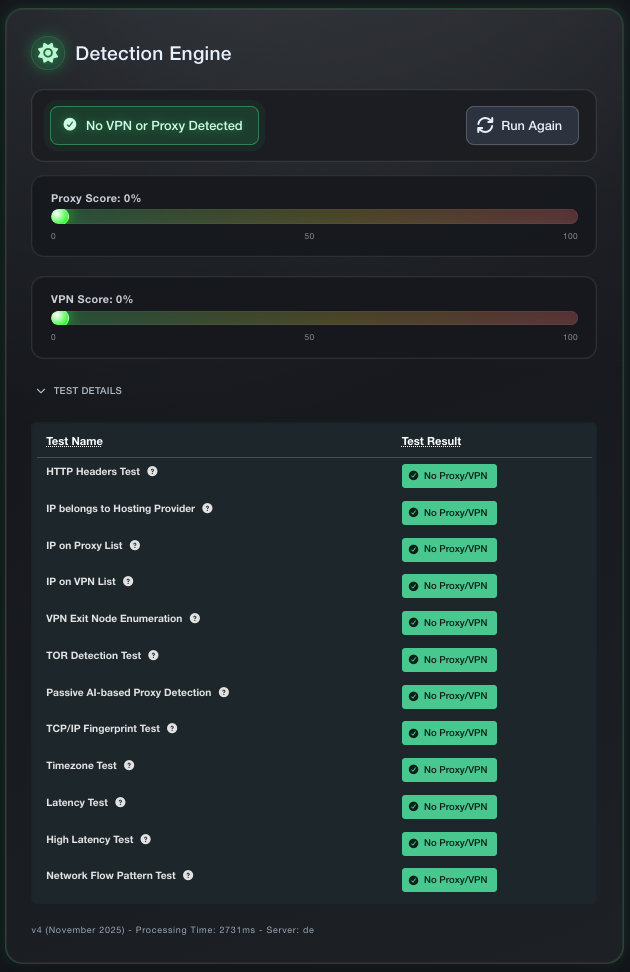 The detection engine correctly identified ExpressVPN as an active VPN tunnel during live testing.